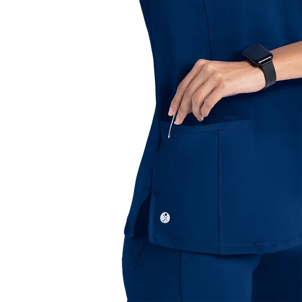 Our Active Fashion Top is extremely comfortable and designed for those 12-hour+ shifts. If you need pockets to store essentials, this V-neck has two open pockets and a zipper pocket easily accessible in the front. Made with Viofence® antimicrobial technology, this top keeps you cool and inhibits the growth of microbes on the surface of the fabric.